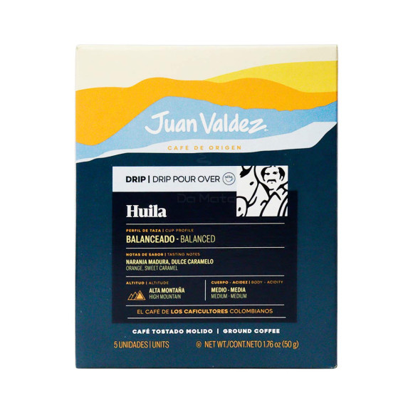 Café Colombiano Drip Huila Juan Valdez *Em Sachê* (0 avaliações) SKU: 7701362013686 Produto: Indisponível Avise-me quando chegar Descrição do Produto O Café Juan Valdez Drip Huila em Sachê traz uma experiência completamente nova para você que é amante de um bom café importado. A embalagem contém 5 sachês que são a medida certa para qualquer momento do seu dia, e vão ser o suficiente para te encantar a ponto de fazer deste o seu café favorito. A Juan Valdez é uma referência quando falamos em cafés importados, e com tantos anos no mercado se tornou uma das marcas mais cobiçadas entre os apreciadores de cafés. O Café Colombiano Juan Valdez Drip Huila é cultivado em plantação familiar e colhido de maneira artesanal, passando por uma rigorosa seleção antes de seguir para a linha de produção. O sabor do Café Juan Valdez Drip Huila em sachê é diferente de qualquer outro que você já provou, inicialmente é possível sentir o sabor encorpado de um verdadeiro café colombiano, mas logo surgem as notas de laranja e caramelo. É possível notar um misto de sabor cítrico e levemente adocicado, fazendo a união perfeita de sabores e capaz de encantar até mesmo aqueles que dizem não gostar de café. Este é um café importado de corpo e acidez médias, sendo extremamente equilibrado e ideal para qualquer momento do dia em que você queira relaxar com uma bela bebida quente. O Café Juan Valdez Drip Huila é cultivado no alto das montanhas colombianas, e isso resulta em grãos de café completamente diferentes, com sabor e aroma que se destacam entre os outros cafés importados. O Café Juan Valdez é para verdadeiros apreciadores que buscam novos sabores, e também para os iniciantes no mundo dos apreciadores de cafés em busca de uma boa opção para iniciar. O café em sachê é ideal para você que busca o sabor mais fiel possível do café. Extremamente prático de fazer, com notas adocicadas e um sabor sem igual. Chegou a hora de descobrir algo completamente novo, garanta já o seu Café Colombiano Juan Valdez Drip Huila. Adicione ao seu carrinho também o Juan Valdez Avelã. Características do Café Colombiano Drip Huila Juan Valdez *Em Sachê*: - 5 sachês de 10g- Notas de laranja e caramelo- Intensidade média- Corpo médio- Acidez média- Café importado- Para todos os momentos- Qualidade Juan Valdez Especificações: - Altura: 10cm- Largura: 10cm- Formato: Moído (sachê)- Tipo: Arábica- Intensidade: Média- Corpo: Médio- Acidez: Média- Notas: Laranja e caramelo- Origem: Colômbia Você irá receber: 01 - Pacote de Café Juan Valdez Drip Huila com 5 sachêsValidade: 09/23 | Manter em local fresco, arejado e livre de odores. Observações importantes: - As medidas e peso do produto são valores aproximados.- Imagens meramente ilustrativas, podendo sofrer pequenas alterações na coloração.- Não acompanha objetos de decoração na imagem.- Ao receber a mercadoria, o cliente deve verificar as condições da embalagem, caso haja alguma avaria não assine o comprovante de recebimento. Ficha Técnica