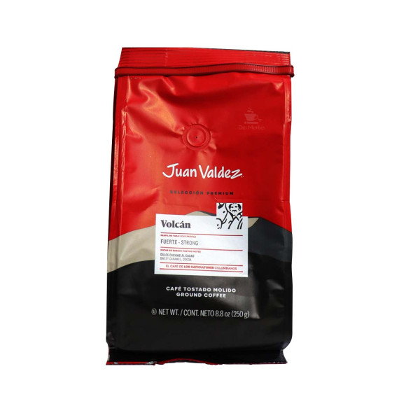 Café Colombiano Volcán Juan Valdez 250g (0 avaliações) SKU: 7707280880256 Produto: Indisponível Avise-me quando chegar Descrição do Produto Café colombiano Volcán Juan Valdez, cada pacote de café é um resultado de 540.000 famílias colombianas que cultivam o maravilhoso blend arábico conhecido mundialmente. Experimente um café único com aroma de Caramelo e Cacau que mudará sua rotina de tomar café. ESPECIFICAÇÕES Dimensões do Pacote (A x L x P): 21 x 10 x 6 cmFormato do café: MoídoTipo de café: ArábicaIntensidade: ForteFabricante: Juan ValdezOrigem: Colombia Você irá receber: 01 Volume01 Pacote de Café Juan Valdez 250g Validade: 04/23 | Manter em local fresco, arejado e livre de odores. Observações importantes: - As medidas e peso do produto são valores aproximados. - Pode haver alguma diferença de tonalidade entre a imagem e o produto real, por conta do tratamento de imagens e a calibração de cores do seu monitor. - As imagens são meramente ilustrativas, não acompanham objetos de decoração. - Ao receber a mercadoria, o cliente deve verificar as condições da embalagem, caso haja alguma avaria não assine o comprovante de recebimento. Ficha Técnica