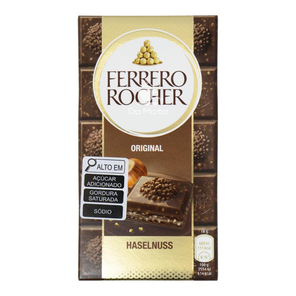 Chocolate Ferrero Rocher Haselnuss 90g (0 avaliações) SKU: 8000500359488 Produto: Indisponível Avise-me quando chegar Descrição do Produto A Tabacaria Da Mata está orgulhosa em apresentar sua mais recente e deliciosa novidade importada: o Chocolate Ferrero Rocher Haselnuss com 90g de puro prazer! Este chocolate ao leite excepcional é uma verdadeira obra-prima culinária, recheado com um creme de avelã luxuosamente cremoso e pedaços de avelã crocantes que vão fazer seus sentidos dançarem de alegria. Cada mordida é uma experiência de sabor extraordinária, combinando a suavidade do chocolate ao leite com a riqueza e textura da avelã, criando um equilíbrio harmonioso que é verdadeiramente divino. O Ferrero Rocher Haselnuss é a escolha perfeita para aqueles momentos em que você deseja se presentear ou surpreender alguém especial com um mimo gourmet. Não deixe escapar a oportunidade de experimentar esta novidade incrível disponível na Tabacaria Da Mata. Garanta o seu agora e eleve sua experiência de chocolate a um novo patamar de prazer! É uma indulgência que vai deixar você ansioso por cada pedaço. Experimente também o Raffaelo 90g! Características da Chocolate Ferrero Rocher Haselnuss 90g: - Chocolate ao leite- Creme de avelã- Pedaços de avelã- Leveza no sabor- Derrete na boca- Sabor equilibrado- Para todas as idades- Qualidade Ferrero Especificações: - Comprimento: 14cm- Largura: 7cm- Altura: 1cm- Peso: 90g Você irá receber: 01 - Chocolate Ferrero Rocher Haselnuss 90g Observações importantes: - As medidas e peso do produto são valores aproximados.- Produto para todas as idades- Imagens meramente ilustrativas, podendo sofrer pequenas alterações na coloração.- Não acompanha objetos de decoração na imagem.- Ao receber a mercadoria, o cliente deve verificar as condições da embalagem, caso haja alguma avaria não assine o comprovante de recebimento. Ficha Técnica
