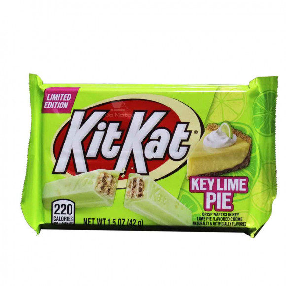Chocolate Importado Kit Kat Torta de limão (0 avaliações) SKU: 034000402939 Produto: Indisponível Avise-me quando chegar Descrição do Produto Chocolate Importado Kit Kat, feito com Waffle crocante e recheado de creme e raspa de limão, muito diferente dos Kit Kats vendidos e fabricados no Brasil! ESPECIFICAÇÕES Dimensões do Pacote (A x L x P): x x cmIngredientes: Waffle Crocante, Leite, Creme de Limão, Raspa de Limão, Farinha de Trigo e AçucarFabricante: HersheyOrigem: USA Você irá receber: 01 VolumeKit Kat Torta de Limão 100g Validade: 04/22 | Manter em local fresco, arejado e livre de odores. Observações importantes: - As medidas e peso do produto são valores aproximados. - Pode haver alguma diferença de tonalidade entre a imagem e o produto real, por conta do tratamento de imagens e a calibração de cores do seu monitor. - As imagens são meramente ilustrativas, não acompanham objetos de decoração. - Ao receber a mercadoria, o cliente deve verificar as condições da embalagem, caso haja alguma avaria não assine o comprovante de recebimento. Ficha Técnica